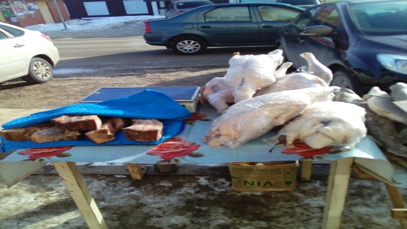 Специалистами Набережночелнинского ТО ГВИ ГУВ КМ РТ в г. Агрыз по ул. К.Маркса выявлен факт реализации рыбой (карпы) в количестве 12шт, рыбой жерех в количестве 3шт, рыбой щука в количестве 8 шт, гусями 2 тушки, тушками индюшатины 2 шт, грудинкой домашней в количестве 3 кг без ветеринарных сопроводительных документов. Нарушен Приказ Минсельхоза РФ N 589 от 27 декабря 2016г. «Об утверждении ветеринарных правил организации работы по оформлению ветеринарных сопроводительных документов, порядка по оформления ветеринарных сопроводительных документов на бумажных носителях»; ст. 15 Закона Российской Федерации от 14.05.1993г. №4979-1 «О Ветеринарии». Виновные привлечены к административной ответственности по ч.1 ст. 10.8.