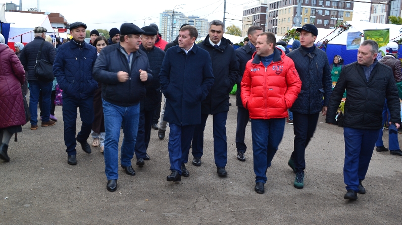 В Республике продолжаются сельскохозяйственные ярмарки. Организацию проведения традиционного мероприятия оценили глава Минсельхозпрода РТ Марат Зяббаров , заместитель министра сельского хозяйства и продовольствия РТ Николай Титов, глава Касмко-Устьинского муниципального района Наиль Вазыхов и Главный государственный ветеринарный инспектор РТ Алмаз Хисамутдинов.