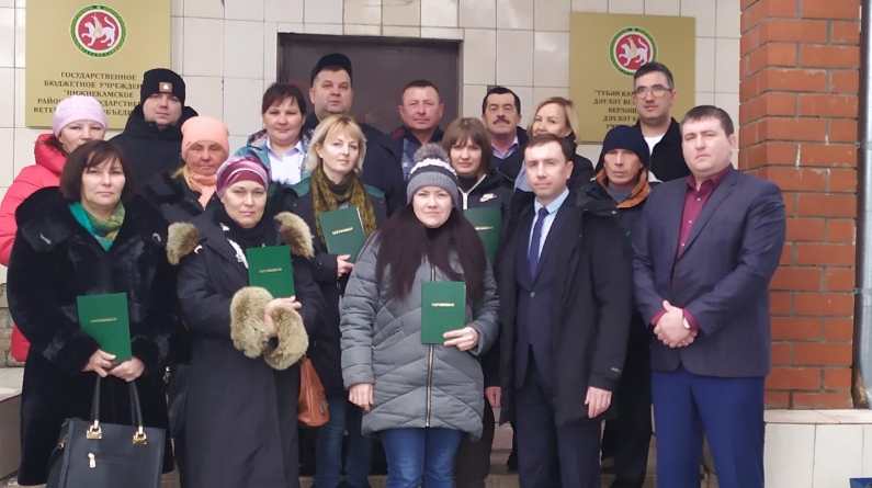 Сегодня в Нижнекамском ветеринарном объединении начальник Нижнекамского территориального отдела государственной ветеринарной инспекции Андрей Никитин и начальник ГБУ «Нижнекамское РГВО» Раниль Шарапов вручили сертификаты о прохождении курсов "Комплексная программа обучения животноводов навыкам оказания первой ветеринарной помощи".