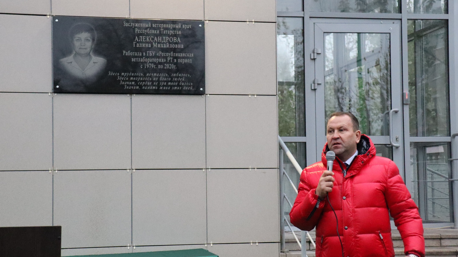 Сегодня в здании Республиканской ветеринарной лаборатории РТ открыли мемориальную доску, в память о знаменитом ветеринарном враче, враче-токсиколога, бывшего заместителя директора ГБУ «Республиканская ветлаборатория» Галине Михайловне Александровой. Галина Александрова посвятила 41 год жизни ветеринарной медицине.