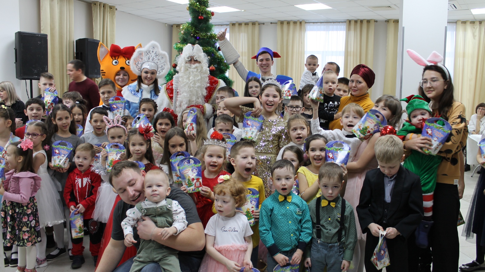 Дети приняли участие на новогоднем представлении. Их поздравил Дед Мороз со Снегурочкой, а так же герои известных сказок и мультфильмов. Утренник сопровождался весёлыми хороводами вокруг ёлки, играми, чтением стихотворений, танцами, в которых с удовольствием принимали участие дети. В завершении праздника каждый ребёнок получил подарок от Деда Мороза.