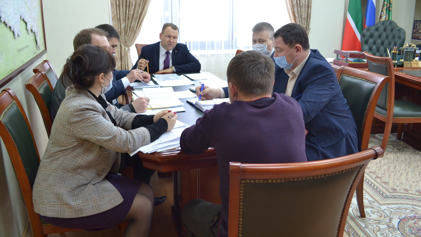 Бүген ТР Министрлар Кабинетының Баш ветеринария идарәсе җитәкчесе Алмаз Хисаметдинов идарә җитәкчелеге астындагы ветеринария оешмалары белгечләре һәм терлекчелек хуҗалыкларында эшләүче мал табиблары белән әңгәмә уздырды.